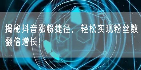 抖音已成为当下最热门的社交媒体平台之一,吸引众多用户争相入驻。如何在这个竞争激烈的平台上快速涨粉,实现粉丝数翻倍增长呢?本文将为你揭秘抖音涨粉的捷径,助你成为抖音达人!