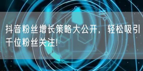 通过以上策略的实施,你可以在抖音上轻松吸引千位粉丝关注。不断学习和探索更多的抖音营销技巧和方法,提高自己的创作水平和影响力,成为抖音上的佼佼者。