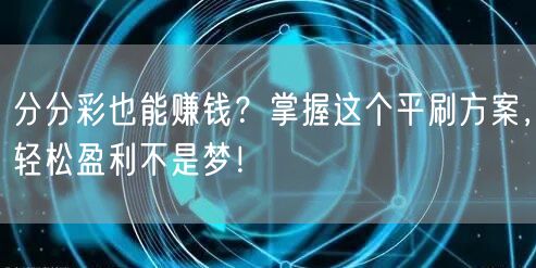 分分彩也能赚钱?掌握这个平刷方案,轻松盈利不是梦!