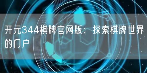 通过本文的介绍,相信大家对开元344棋牌官网版有了更深入的了解。这里不仅是棋牌世界的门户,更是你放松身心、结交朋友的最佳场所。快来体验吧!